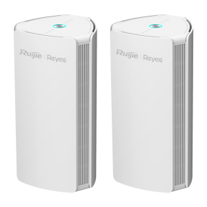 Reyee Pack 2 Routers Gigabit Mesh Wi-Fi 6 AX1800 – 3 Portas RJ45 10/100/1000 Mbps – 802.11ax 2×2 banda dupla 2.4 e 5 GHz – Gestão remota através da Cloud e da aplicação – Controlo Parental , Rede de Convidados, Roaming – Concebido para criar uma rede Mesh completa
