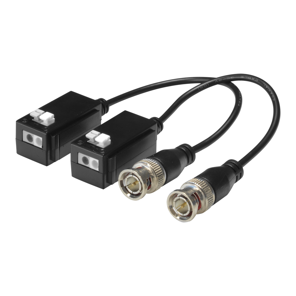 Optimizado para transmissão do sinal de vídeo de 1 câmara de alta definição analógica HDTVI/HDCVI/AHD/CVBS. Dispõe de conector BNC macho e terminal de inserção de cabo por pressão, conector de dois pinos.